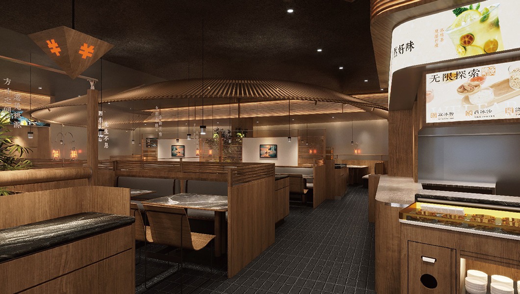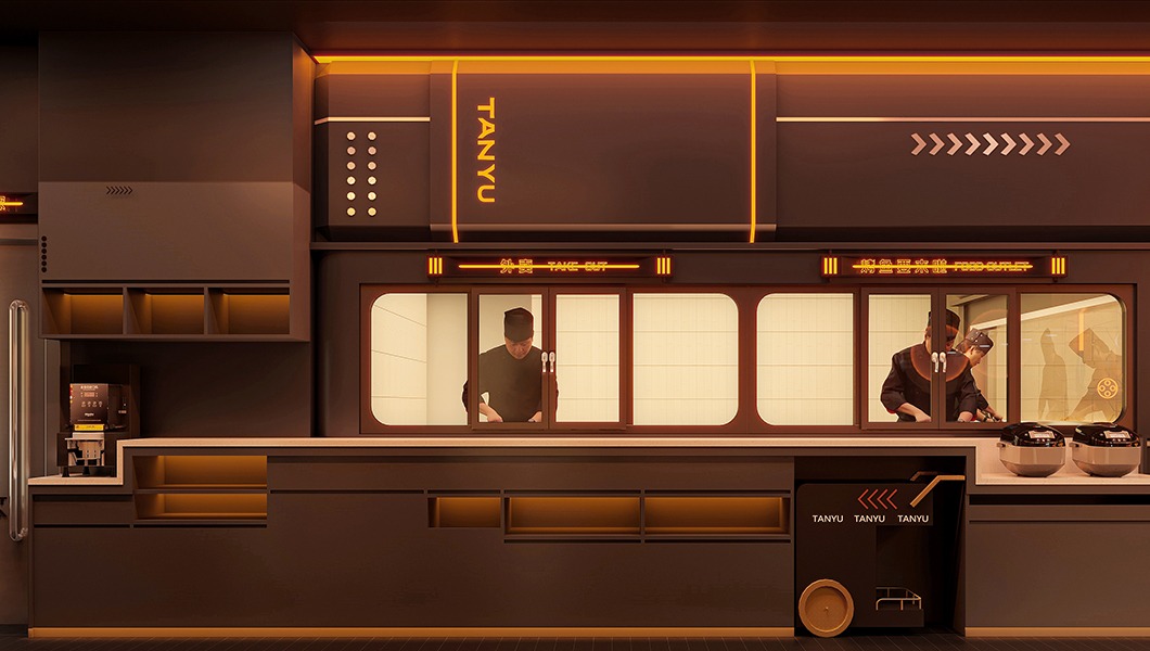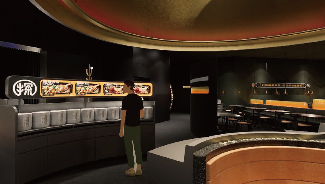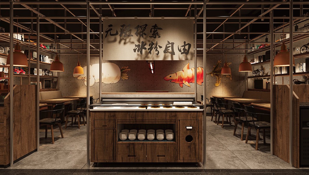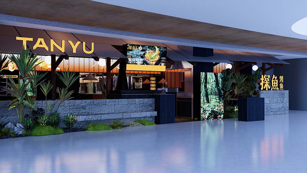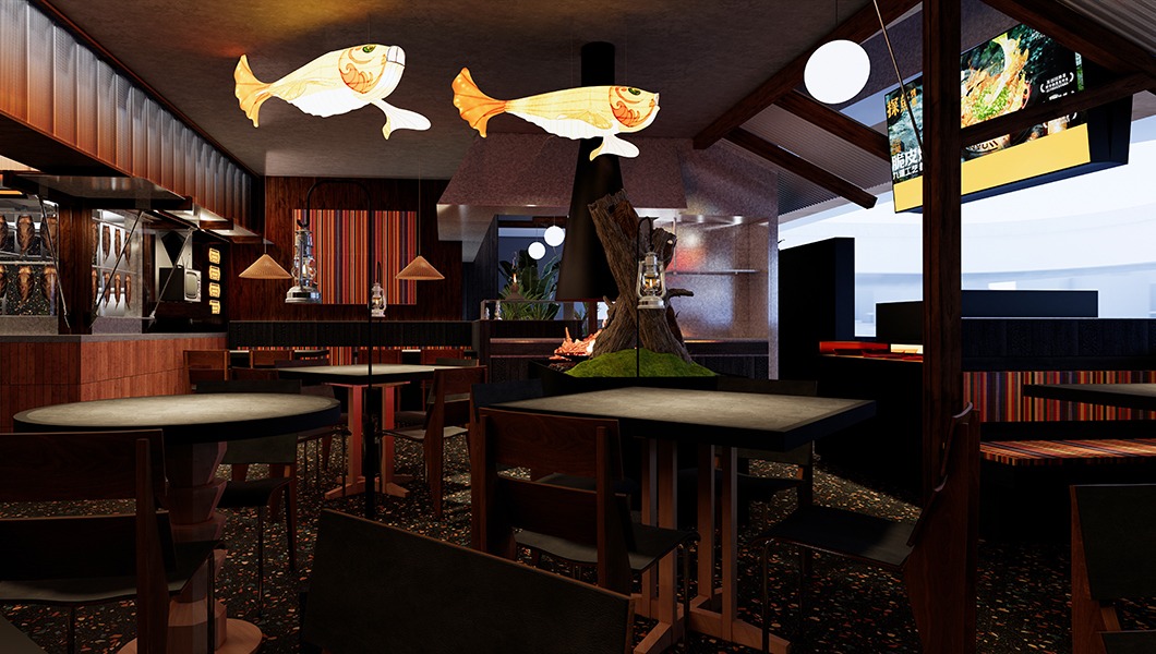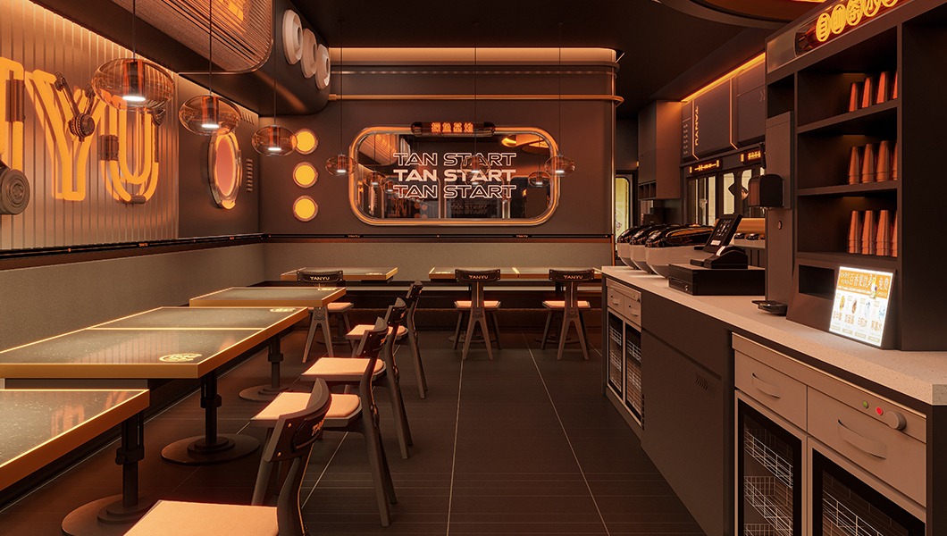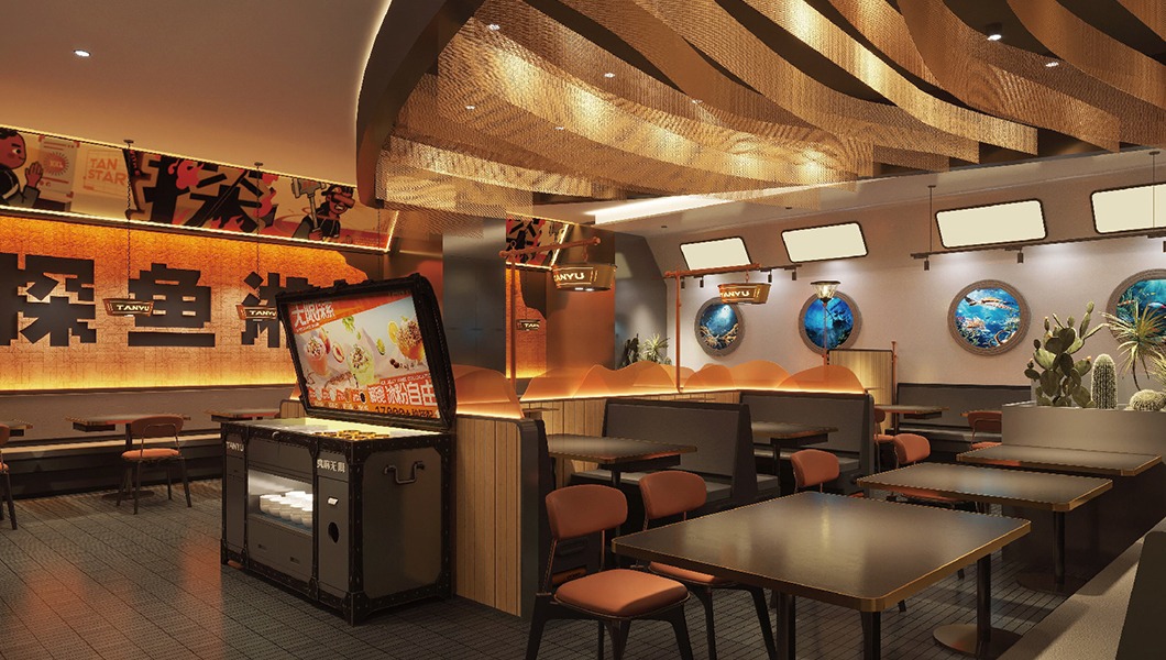 藉由”基地“灵感,整个空间融合赛博朋克设计与未来基地的科技感,五感联动一步一景,塑造可感知、有记忆的用餐场景,进行全方位的文化故事以及趣味性浸润,打造为未来探鱼基地,以此强化品牌独一无二的调性与价值。