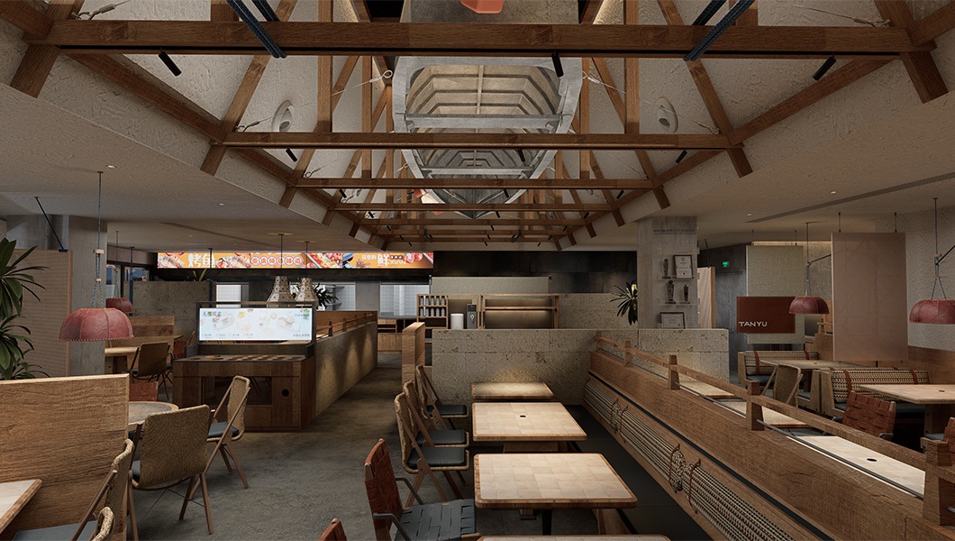 从古老的生存技艺到现代餐饮符号,渔火文化在复古与创新的碰撞中重生。我们以在地饮食文化为基底,通过空间叙事与材质转译,将传统火烤聚落的围合仪式感转化为当代沉浸式体验。通过篝火与渔船的材质对话、压缩与释放的空间节奏、冷峻与温暖的光影博弈,我们让传统渔火意象在环境里重生。这里不仅是餐厅,更是一个承载远古炙烤技艺与现代餐饮文化的容器。